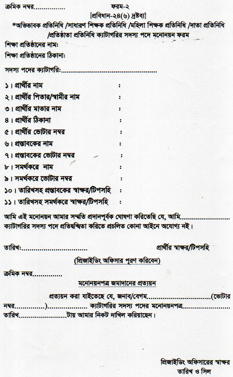 স্কুল ম্যানেজিং নির্বাচন ২০২৫ মনোনয়ন ফরম